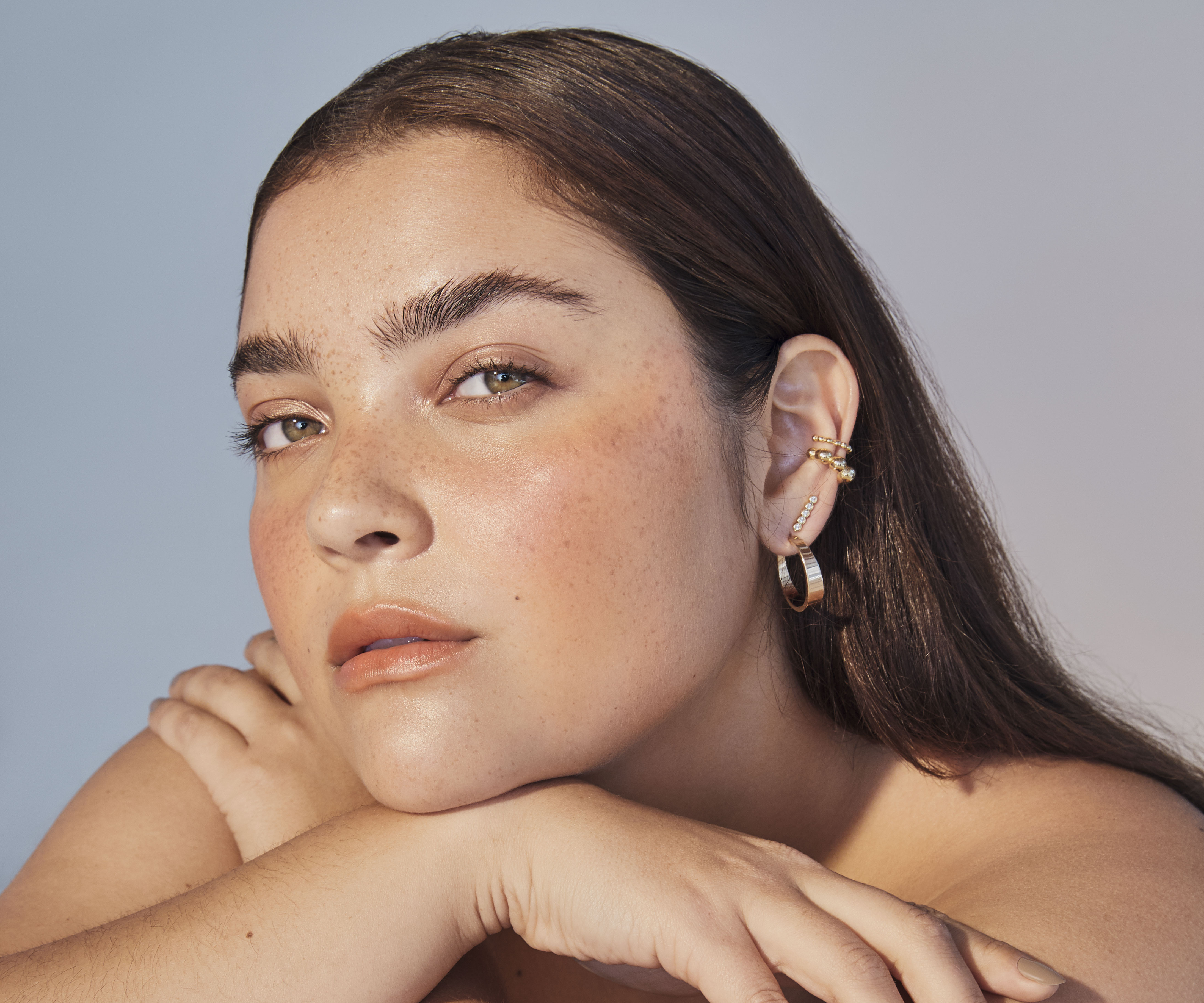 O pulo do gato do make está no estilo que preenche a região abaixo das sobrancelhas, mantendo as pálpebras nuas. Finalize com camadas de máscara para cílios e gloss incolor.