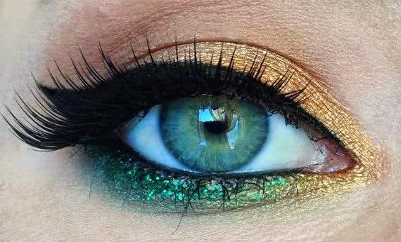 Se você gosta de atrair olhares, use e abuse de sombras com textura vibrantes, e não economize no glitter: