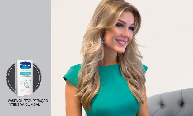“Adoro quando elogiam a minha pele! Como tenho tendência ao tipo mais seco, não descuido nunca. Minha dica é também hidratar de fora para dentro, bebendo bastante água. Além disso, tenho atenção especial no momento do banho. Procuro deixar a temperatura da água morna. Para finalizar, não dispenso uma boa camada de Vasenol Recuperação Intensiva para ficar longe do ressecamento e com a pele saudável e radiante”.