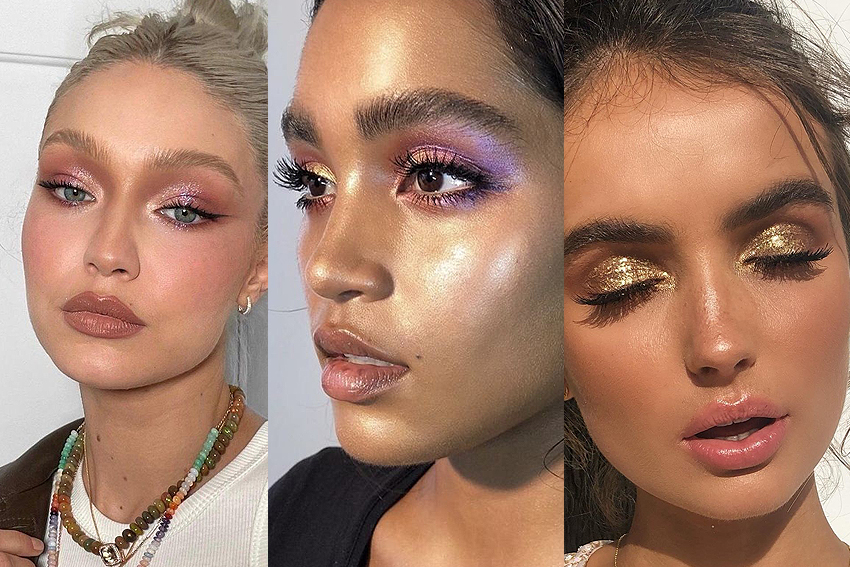 Brilho, brilho e mais brilho. Quem ama a pele glow, tem tudo para apostar em uma sombra metálica. A dica, nesse caso, é preparar bem a pele, com a ajuda de hidratantes, e não ter medo do iluminador e da bruma.