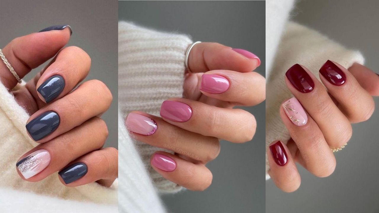 Para quem prefere esmaltações delicadas e românticas, esta inspiração é perfeita. A maioria das unhas recebe um tom de rosa queimado, enquanto apenas a anelar ganha o charme do glitter aplicado próximo à cutícula. O resultado são mãos elegantes e longe de exageros.