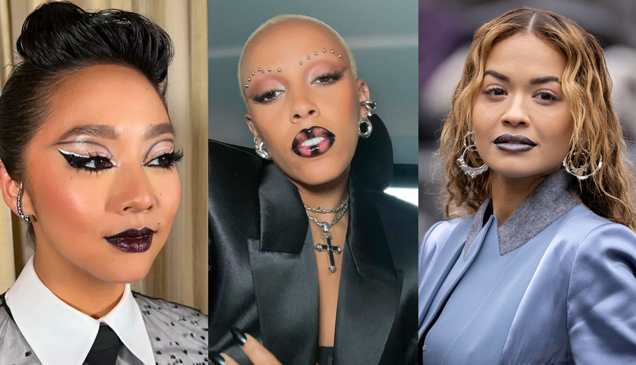 Nos últimos meses, vimos Gigi Hadid com os lábios acinzentados, Doja Cat e Rita Ora com a boca azul, e lábios mais escuros como Stephanie Hsu usou no Met Gala 2023, com um roxo quase preto. Essas tonalidades também apareceram nos desfiles da Rodarte, Mugler e Kim Shui semanas de moda. Aqui no Brasil, durante a Casa de Criadores #52, vimos as marcas Alexandre dos Anjos, Shitsurei e UMS 458 – LL com um bocão bem marcante e escuro.