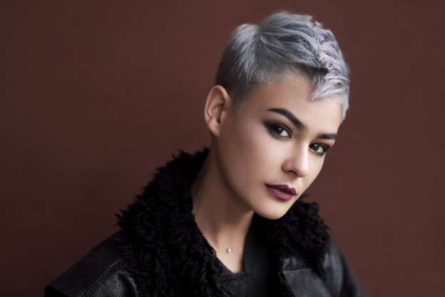 Esse corte é perfeito para as mulheres que desejam um visual moderno com esfumado em degradê e combina com rostos alongados, quadrados e ovais. “O degradê da nuca até às laterais com a máquina com variações em altura até o topo dá alongamento na parte superior com muita leveza e desconexão”, explica Rouze. “Para criar uma leitura moderna, pode descolorir o cabelo até o tom o mais claro possível, neutralizar o fundo amarelo e manter uma máscara com pigmentos semanal, para não perder o platinado. Use também uma pomada para efeito topete.”