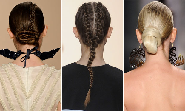 Trança embutida, coque sinuoso, rabo da cavalo vintage, franjão, trança com coque: aprenda a fazer cinco penteados de passarela que merecem ganhar as ruas. São os complementos que faltavam para os seus looks!