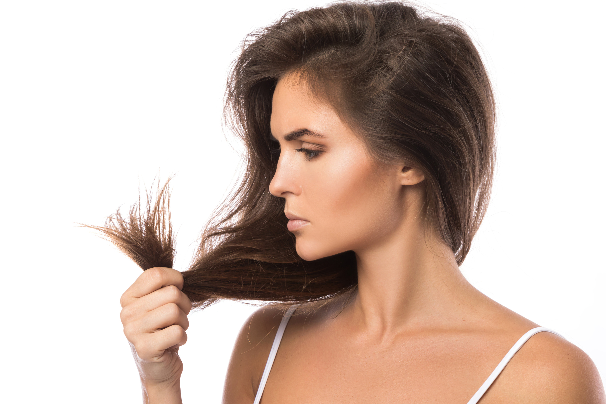 Cabelo castanho com pontas alaranjadas indica falta de manutenção no corte e na cor. “Também é comum que, após terminar uma escova, você tenha dificuldade de dar forma as extremidades dos fios por conta do ressecamento e dos danos”, alerta Clayton.