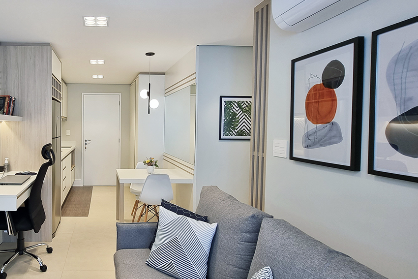 Foi esse conceito que os profissionais utilizaram para decorar um estúdio de 34m² no bairro Vila Mariana, em São Paulo. O morador apresentava algumas características que demonstravam que seu bem-estar estava conectado a estar cercado de outras pessoas, que gostava de ser notado e que tinha personalidade perfeccionista.