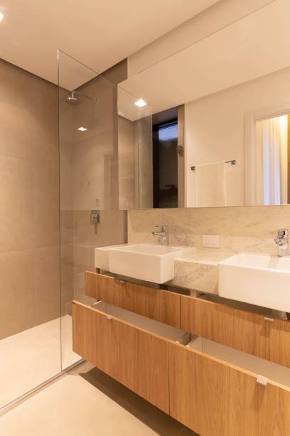 Banheiro, cozinha, quartos e sala, todos os ambientes do apartamento receberam o revestimento moderno.