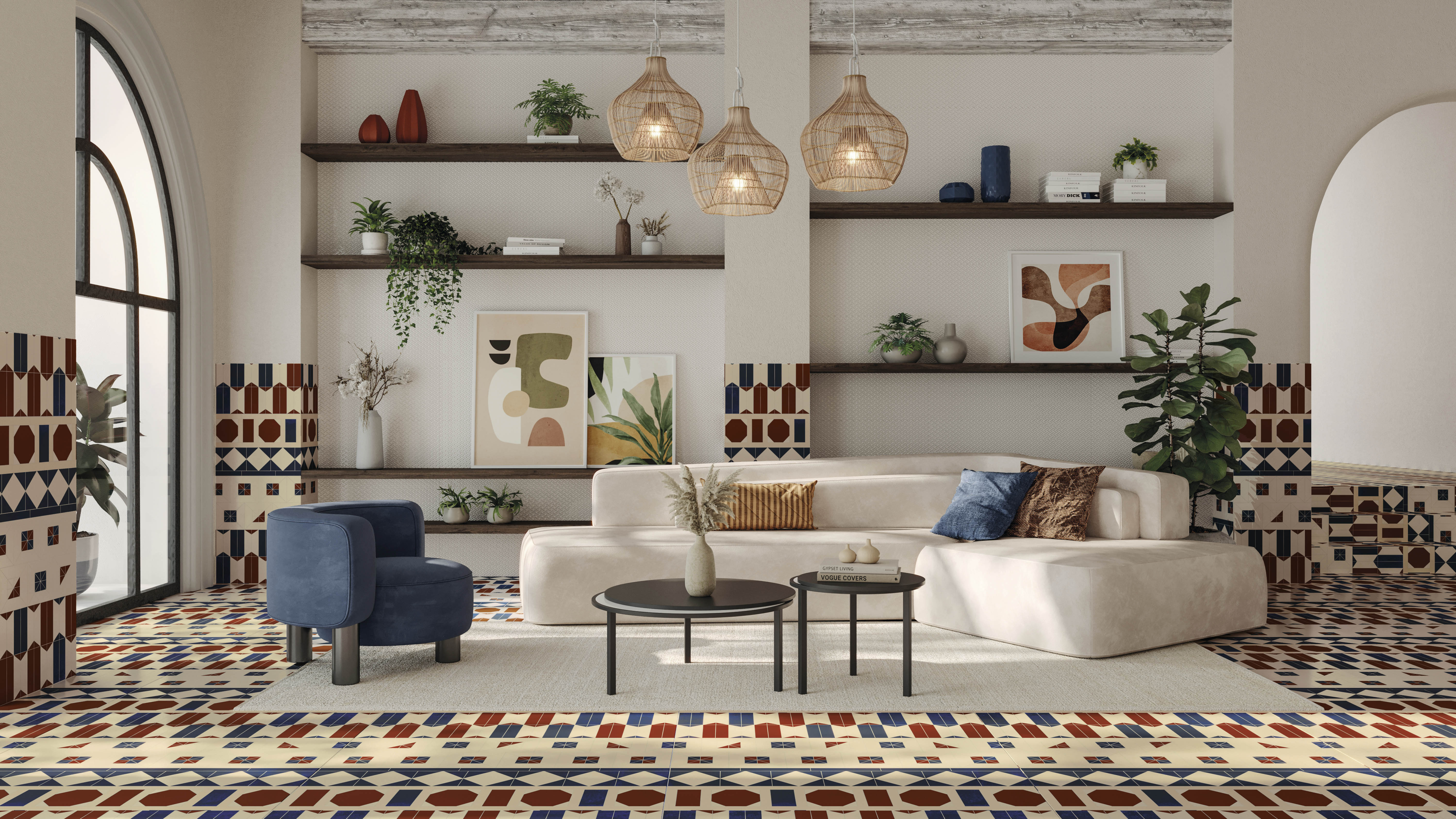 A estilista Isabela Capeto assina novas coleções de porcelanatos para a Ceusa, que unem moda e design e celebram o artesanal, a cor e a valorização da cultura brasileira. O porcelanato Brasilidade é inspirado nas recordações de uma viagem para a região do Cariri, no Ceará, e nos antigos azulejos hidráulicos. Uma peça em grande formato com tons quentes e formas geométricas.