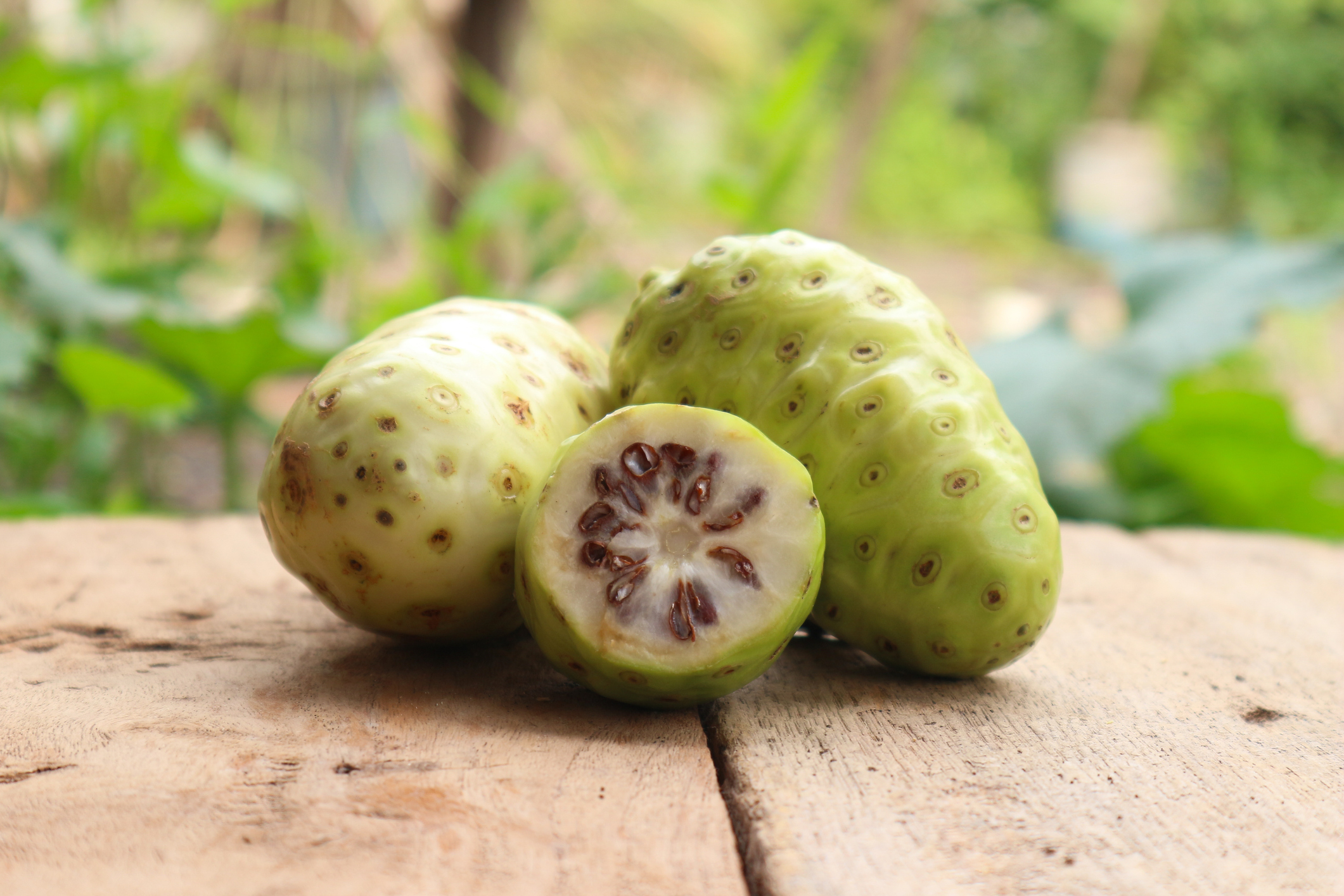 A noni (Morinda citrifolia) é uma fruta de aparência exótica e cheiro marcante, amplamente associada à medicina tradicional em regiões do Pacífico e do Sudeste Asiático.