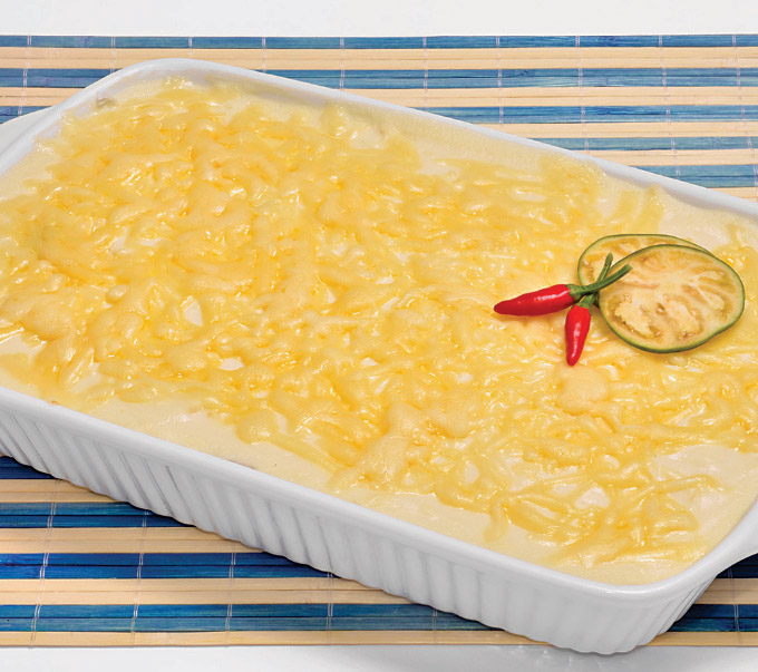 Aqueça a margarina, doure a farinha, junte o leite e o sal. Em um refratário, coloque os pães, o refogado de jiló e cubra com o molho. Salpique o queijo e leve ao forno para gratinar.