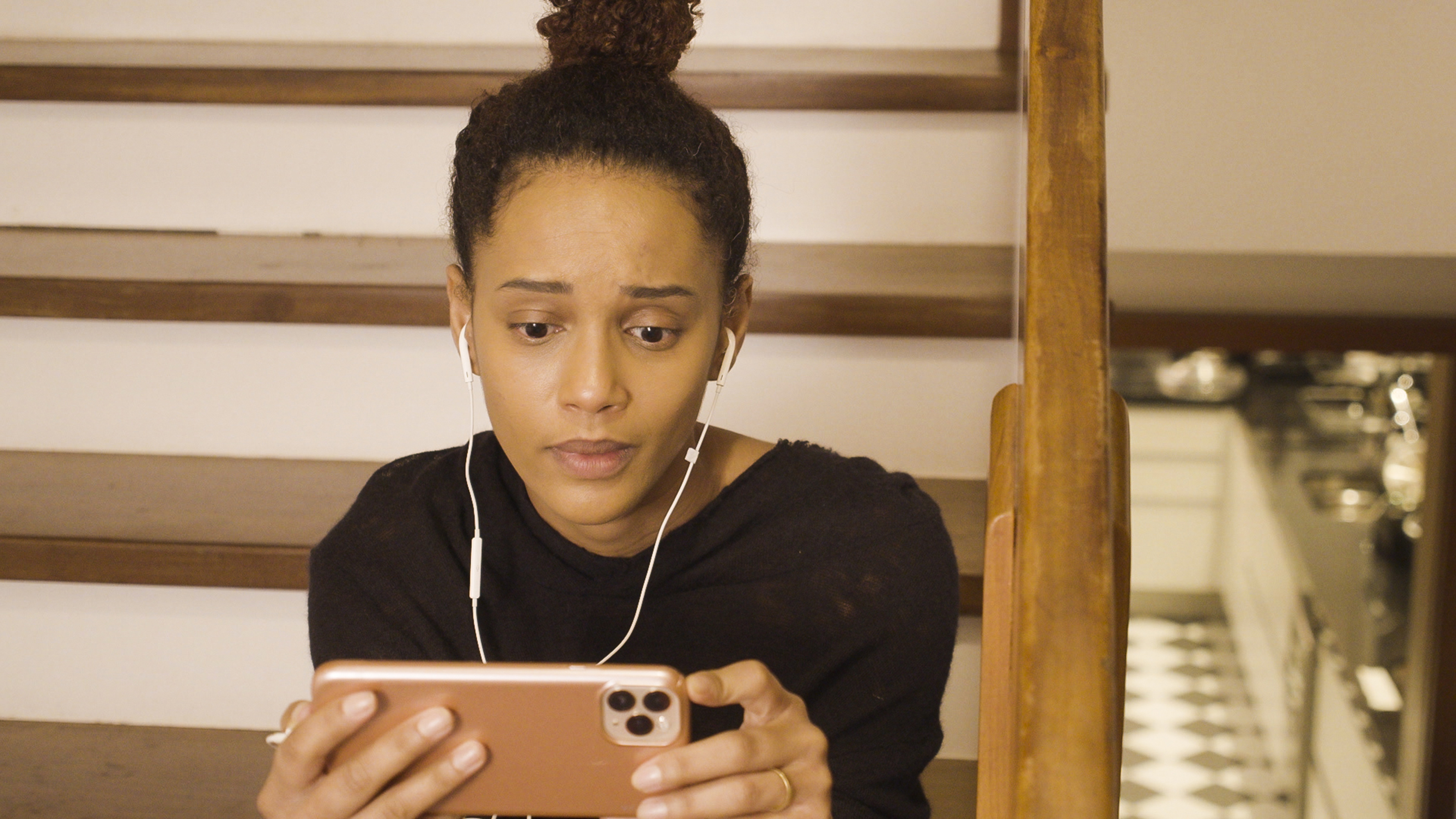 Lucila Robirosa: Para o episódio dirigido pelo Andrucha, tive uma conversa com ele e com a Fernanda Torres, que foi mais uma consultoria. Mandei uns apliques para ela e Fernanda Montenegro usarem em uma passagem de tempo. Como estavam sem conexão, na serra do Rio de Janeiro, fizeram tudo sozinhas. Falamos antes, mas na hora da gravação não sei como ficou. Estou curiosa para ver, na verdade (risos). No capitulo do Lázaro e da Taís, eu mandei uma referência e ela tinha os materiais necessários, fomos nos falando por mensagem. No caso do Caio e da Luisa, tínhamos mais elementos, pois eles se conhecem na noite, então parti daí, com uma referência para fazer a chegada deles no apartamento. E eles têm também uma cena bacana em que imitam diversos filmes, então usamos mais maquiagem ali. No restante do episódio é aquela maquiagem básica, de pessoas que estão em quarentena. No caso da Fabíula, será maquiagem de uma mulher que está doente, como se fosse uma gripe, pois ela está com suspeita de Covid.