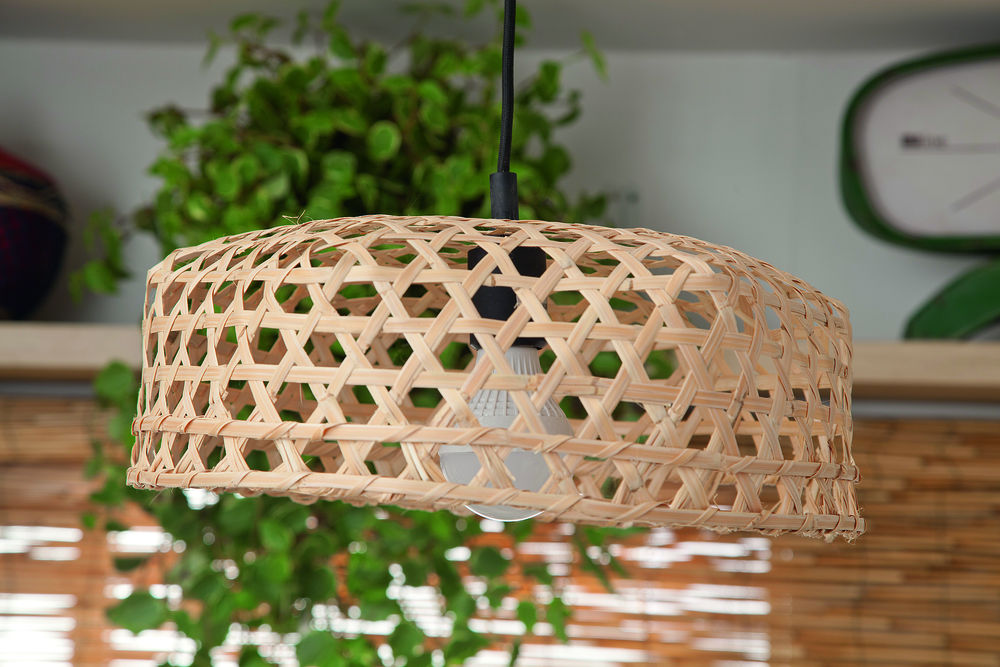 º Para copiar, basta pegar um balaio (o da foto é de fibra de cana-brava, 50 cm de diâmetro. Cestarias Regio) e passar pelo meio dele um pendente simples de silicone ou fio elétrico com soquete acoplado (aqui, usamos Pendente Dot Color, da Taschibra. Leroy Merlin).