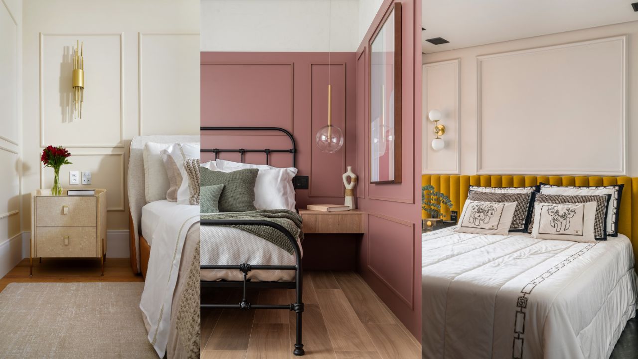 O recurso agrada justamente pela versatilidade: pode aparecer em composições simétricas e tradicionais, em desenhos mais retos e minimalistas ou em propostas atuais, combinadas a cores suaves, iluminação embutida e mobiliário leve. Também é uma boa alternativa para quem busca impacto estético sem recorrer a cabeceiras estofadas ou peças soltas.