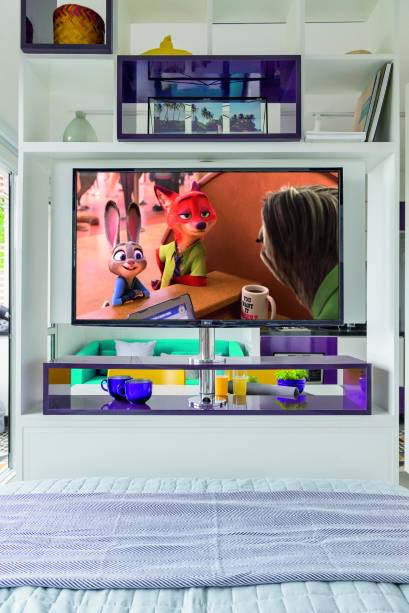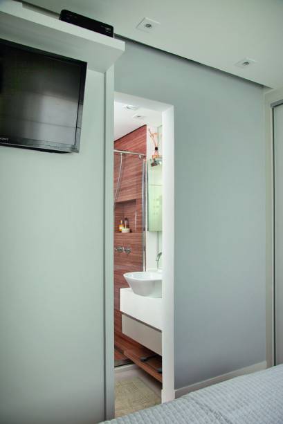 Quer a televisão no quarto, mas o espaço é pequeno? Os projetos a seguir provam que não é preciso abrir mão do aparelho mesmo com metragens mínimas. Confira