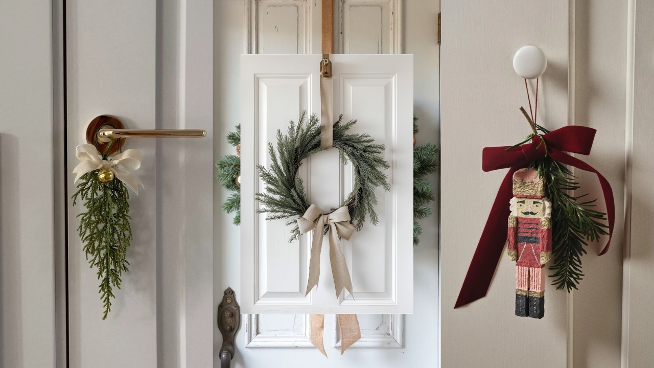 Laços, bordados e diferentes formatos se unem em relicários de porta que levam charme e poesia à decoração de Natal
