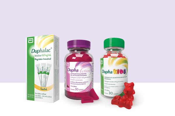 *DUPHALAC® (lactulose) MS: 1.0553.0338. Indicações: tratamento sintomático da constipação intestinal e para a prevenção e tratamento de encefalopatia hepática, tanto no pré-coma quanto no coma hepático. SE PERSISTIREM OS SINTOMAS, O MÉDICO DEVERÁ SER CONSULTADO.