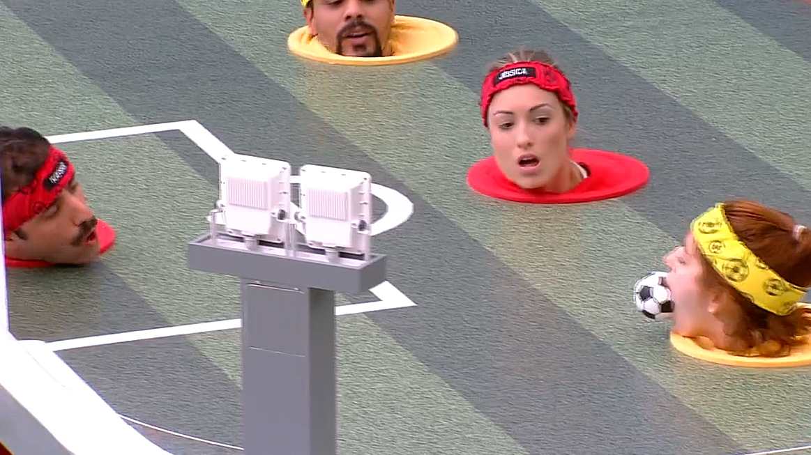 A prova do Soprobol foi bem simples: divididos em times de futebol, os brothers foram encaixados numa mesa simulando um campo de futebol e deveriam fazer gol somente na base do sopro.