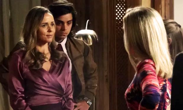 A megera fica felicíssima com a revelação, mas não imagina que Sandra é sua verdadeira filha