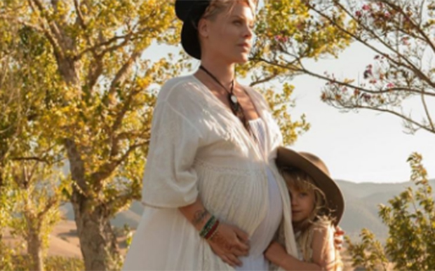 Exibindo um barrigão, Pink posou ao lado da filha Willow, de 5 anos, do casamento de dez anos com Carey Hart.