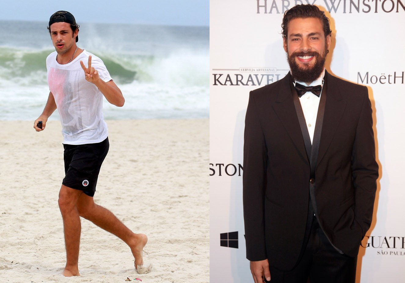 Cauã Reymond foi flagrado na manhã desta quinta-feira (23), no Rio de Janeiro, enquanto corria pela orla da praia, revelando seu novo visual. Até pouco tempo atrás, o ator estava mantendo uma barba espessa para suas produções televisivas, mas optou por apará-la com o fim das gravações da minissérie Dois Irmãos.