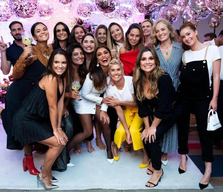 Além do marido Carlos Eduardo Baptista e dos filhos Pedro, de 8 anos, e Antônio, de 5, ela recebeu o carinho de diversos colegas globais, que compareceram em peso. Foram inúmeros cliques ao lado de Flávia Alessandra, Deborah Secco, Marina Ruy Barbosa, David Brazil, Angélica e Luciano Huck, entre outros.