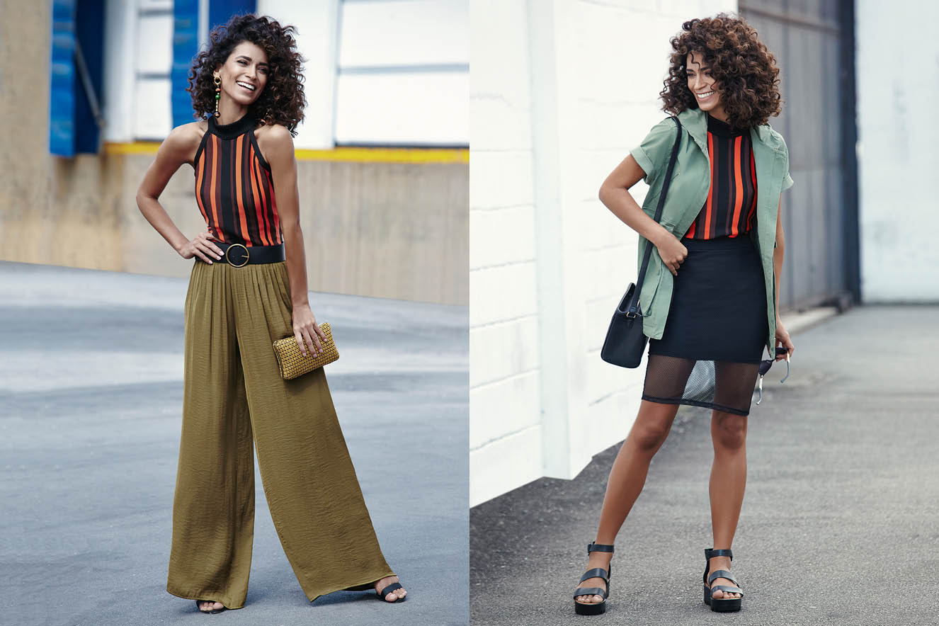 Esta combinação é extremamente balanceada e chic – ao passo em que o body dá sensualidade, a pantalona, por ser mais larguinha e elegante, deixa o look superchic! Use e abuse de acessórios chamativos incrementar o visual. Opte por uma cor de calça que não destoe da outra peça, mas a complemente. Nos pés, sandália ou sapato, a escolha é sua!