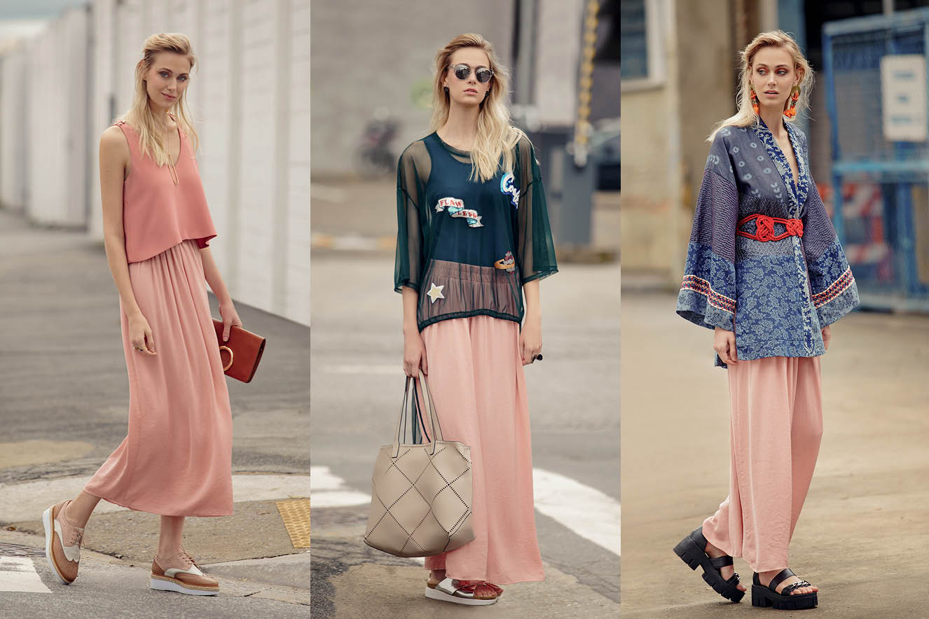 Ideal para dias mais quentes, a saia longa é além de super confortável, feminina e muito versátil. Você pode brincar com o comprimento, usando-a um pouco acima do umbigo. Use e abuse de acessórios marcantes, além de sapatos com o solado grosso para dar um ar mais moderno ao look. Confira, abaixo, 3 ocasiões ideais para arrasar com a mais nova queridinha da estação: