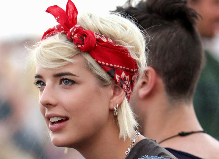 Com amarrações simples e muitas vezes usados para acompanhar um coque, os lenços com estampa floral são uma mão na roda para quem quer fugir do calor e mesmo assim ficar enfeitada. Gosta de tranças? Uma dica bônus é trançar o lenço junto ao cabelo.