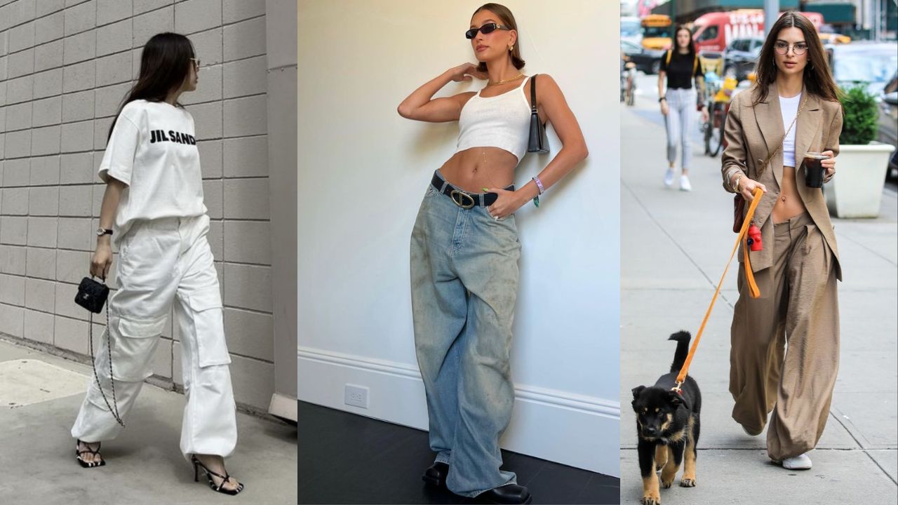 A dupla calça de cintura baixa + camiseta justinha é um clássico dos anos 90 e 2000. O look já foi adotado por fashionistas como Kendall Jenner e Hailey Bieber, mostrando que o combo segue atual e estiloso.