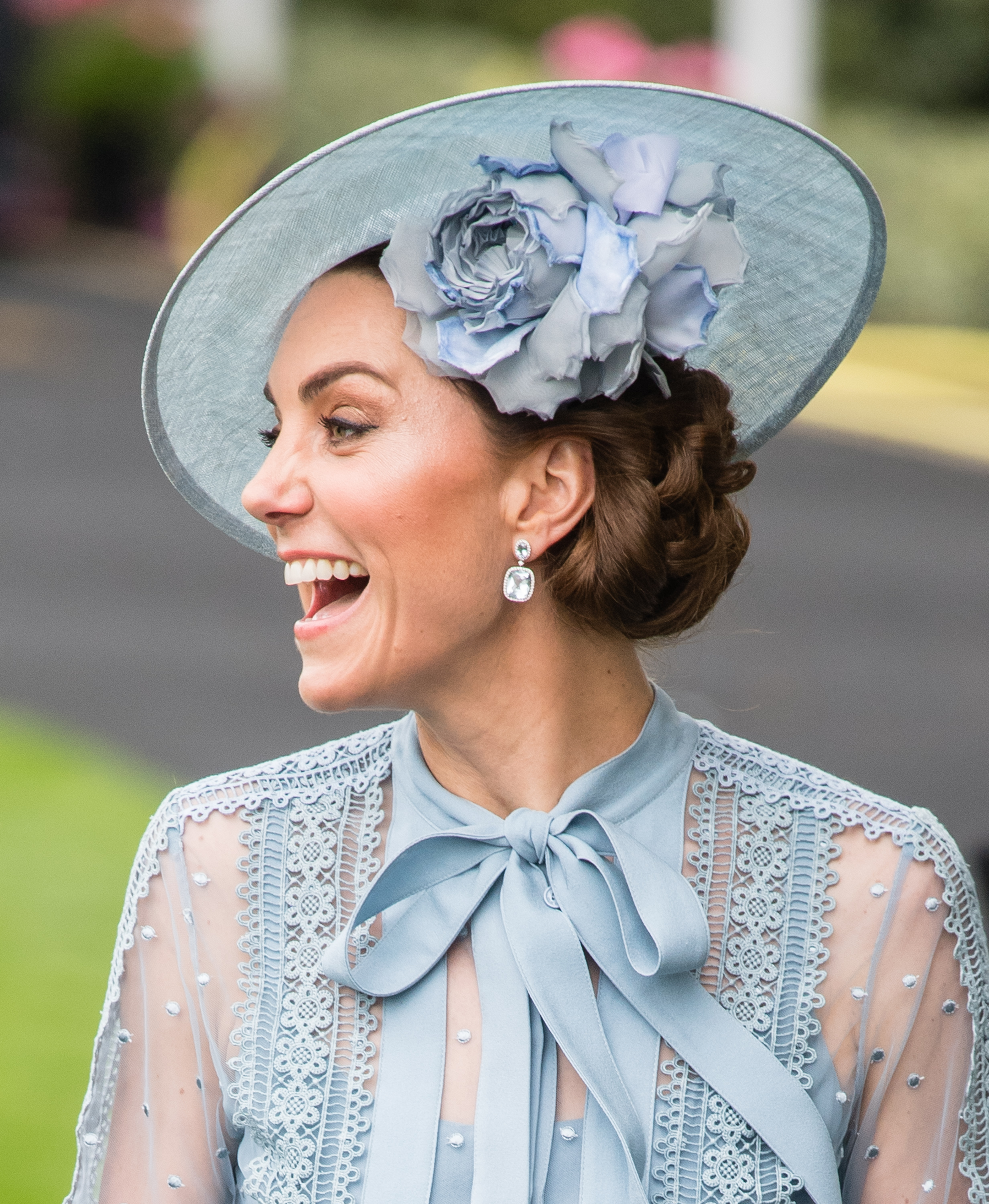 Ao lado do marido, Príncipe William, a duquesa de Cambridge apostou em um chapéu Philip Treacy adornado com uma flor tão extra que faria Carrie Bradshaw dar gritinhos de satisfação.