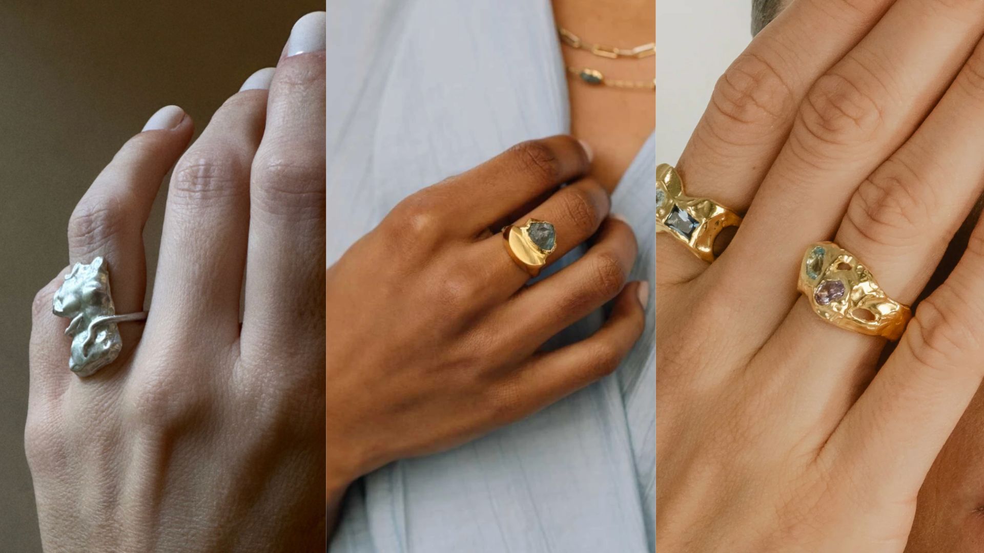 A marca brasileira de acessórios se destaca pela curadoria autoral que transita do clássico ao contemporâneo. No site da marca, há uma variedade de modelos: desde anéis finos e delicados a peças mais amplas e esculturais. O acabamento combina elementos modernos com referências atemporais.