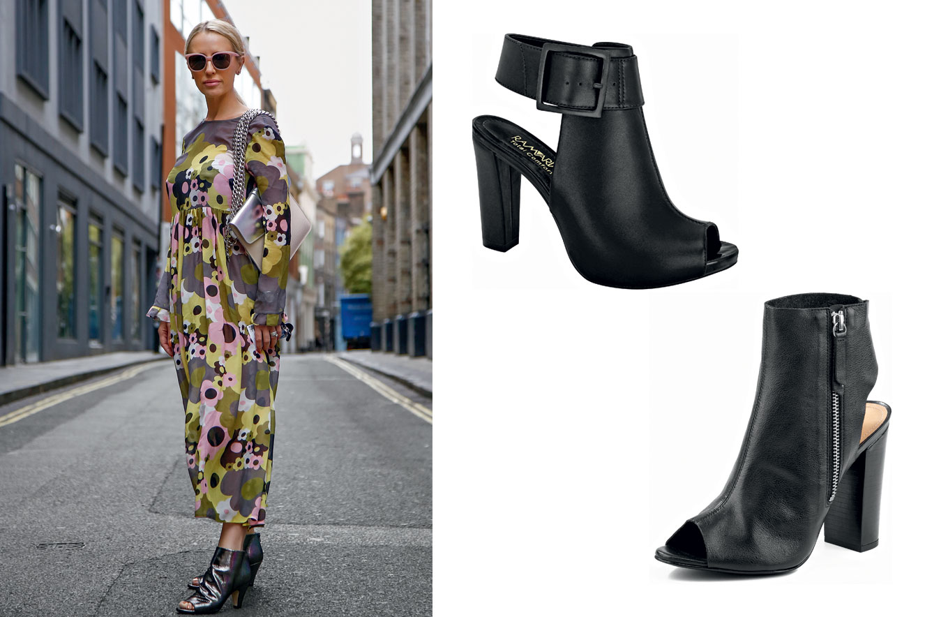 Aberta na frente e atrás, com recortes estratégicos, a open boot é moderna e ousada. Dê preferência aos saltos grossos.