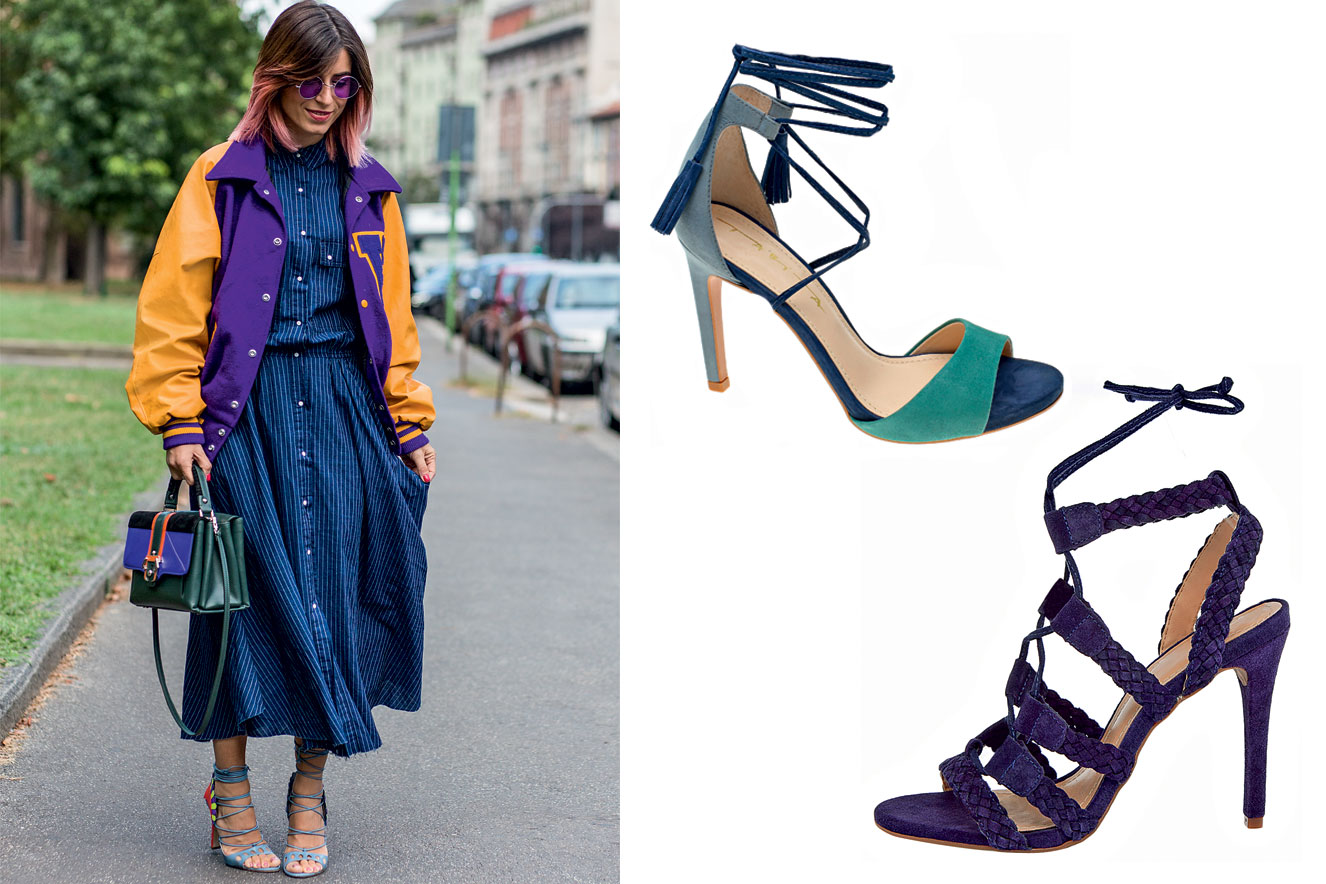 A sandália com tiras que sobem pela perna adicionam sensualidade ao visual. Personalize a amarração deixando alturas diferentes de cada lado.