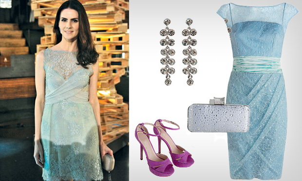 A socialite Amanda, encenada por Lisandra Souto, prefere modelos delicados. ”A renda com brilho e cor suave é ideal para mostrar a pele de forma discreta”, sugere a consultora de moda Fernanda Damy. A peça clara é indicada para casamentos no fim da tarde.