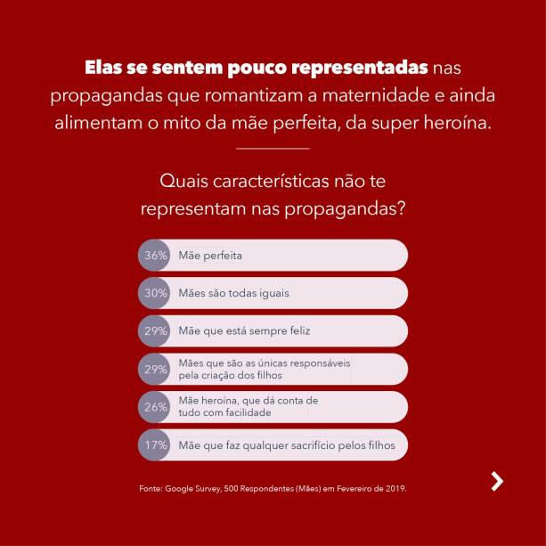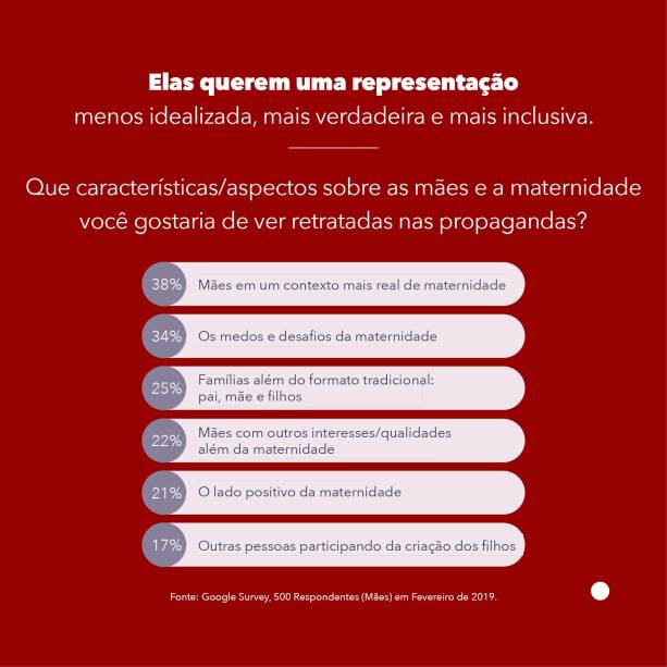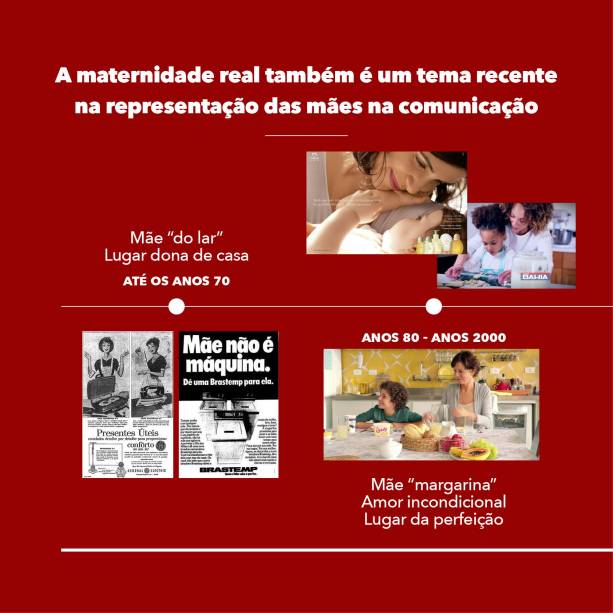 A mãe brasileira não é só mãe: ela também trabalha fora, estuda e cuida da casa. Ela quer uma representação mais inclusiva e empática da maternidade, sem o estereótipo da “mãe heroína”. Elas querem ver mães com outros interesses além da maternidade e falar sobre os medos e desafios que enfrentam, já que eles são bem mais comuns do que a visão romantizada que a maioria tem sobre ser mãe.
