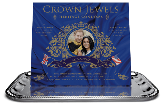 A britânica Crown Jewels Heritage Condoms criou uma edição limitada de camisinhas que homenageiam o casal real.