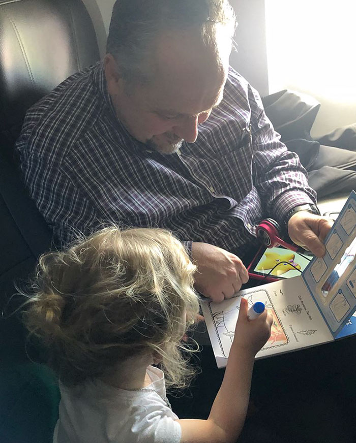 Todd, morador do Kansas, estava entre os passageiros. Ele gentilmente segurou Alexander enquanto Jessica apertava os cintos da menina e manteve Caroline ocupada e entretida durante todo o vôo. “No final, ele era o melhor amigo de Caroline”, explicou Jessica. Todd coloriu, assistiu filme e mostrou todas as paisagens para a pequena.