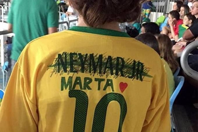 Nesta segunda-feira, uma foto da camiseta da seleção brasileira com o nome de Neymar rasurado viralizou na internet. Não foi à toa: logo abaixo, pode-se ler “Marta”, escrito à mão, acompanhando de um coração.