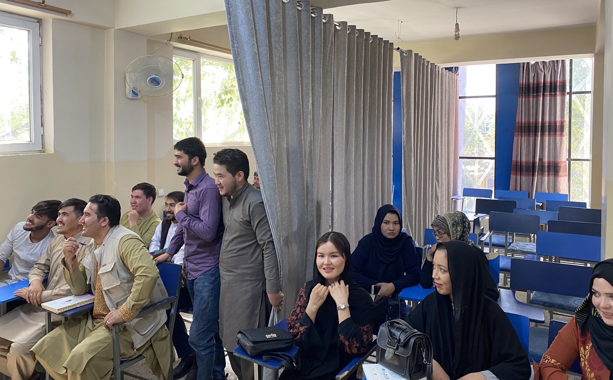 Aulas no Afeganistão separam homens e mulheres por cortina