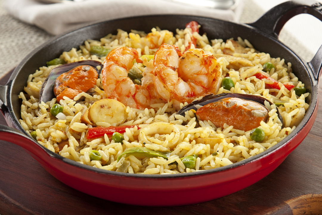 Quando o arroz estiver borbulhando, o prato estará quase pronto. É o momento de decorar com os camarões e os mexilhões cozidos dentro da casca.