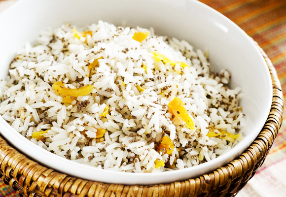 Adicione as castanhas e frutas secas e misture delicadamente com um garfo, para também soltar os grãos de arroz.