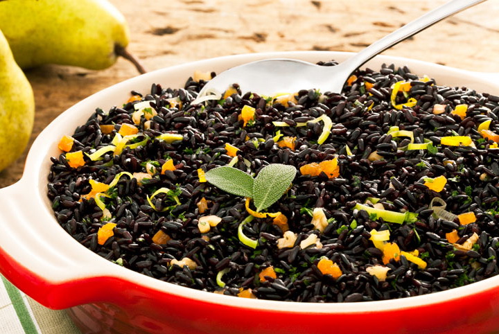 Leve ao fogo a água fria junto com o arroz preto e o sal. Deixe ferver, baixe bem o fogo e mantenha a panela tampada por cerca de 35 minutos, ou até secar.