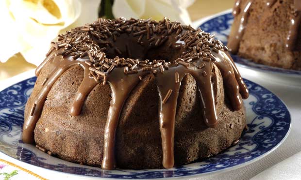 - Despeje sobre o bolo e polvilhe com o chocolate granulado