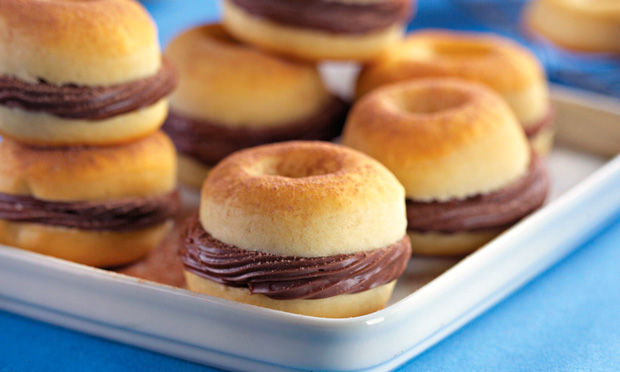- Recheie os donuts e polvilhe o chocolate em pó