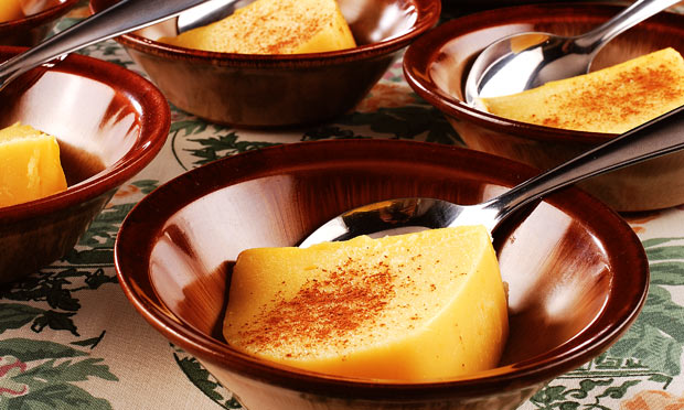 Desenforme, polvilhe canela em pó e sirva.
