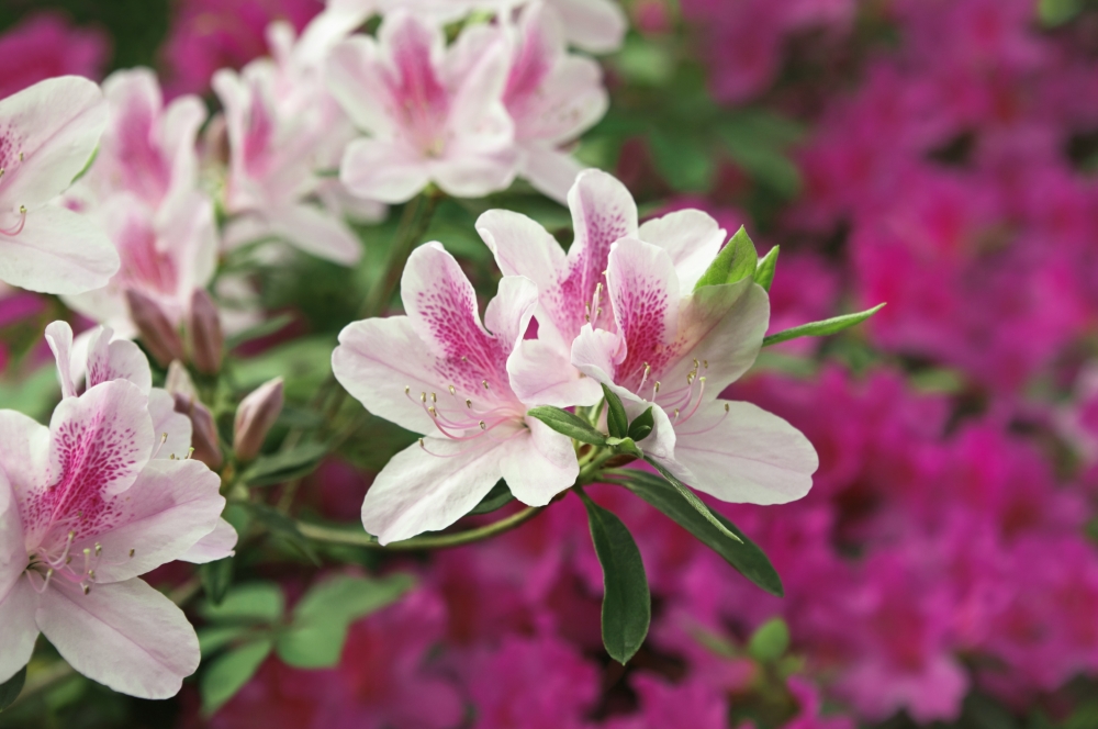 Azaleias protegidas em pequenas estufas