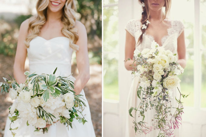 Uma boa alternativa para repaginar o buquê branco é investir em versões desconstruídas, com folhagem exuberante e formatos assimétricos. Este tipo de modelo combina bem com cerimônias com proposta boho chic e eventos diurnos.