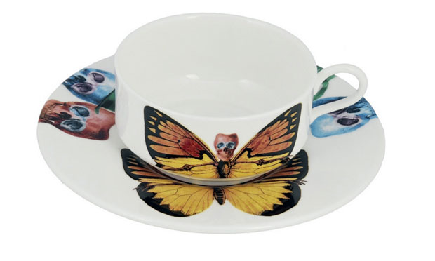 As caveiras e as borboletas meio monstrengas combinam perfeitamente com o chá das cinco. Tanto que foram criadas por um inglês, o vocalista da banda The Prodigy, sucesso nos anos 90. Maxim Reality é também pintor e teve seus desenhos estampados em peças de porcelana limitadas. Existem apenas 500 de cada em todo o mundo. Algumas delas estão à venda na Lifestyle Bazaar, uma lojinha com achados de design em Schoreditch bairro de Londres antes degradado e hoje ponto de encontro de novos artistas.