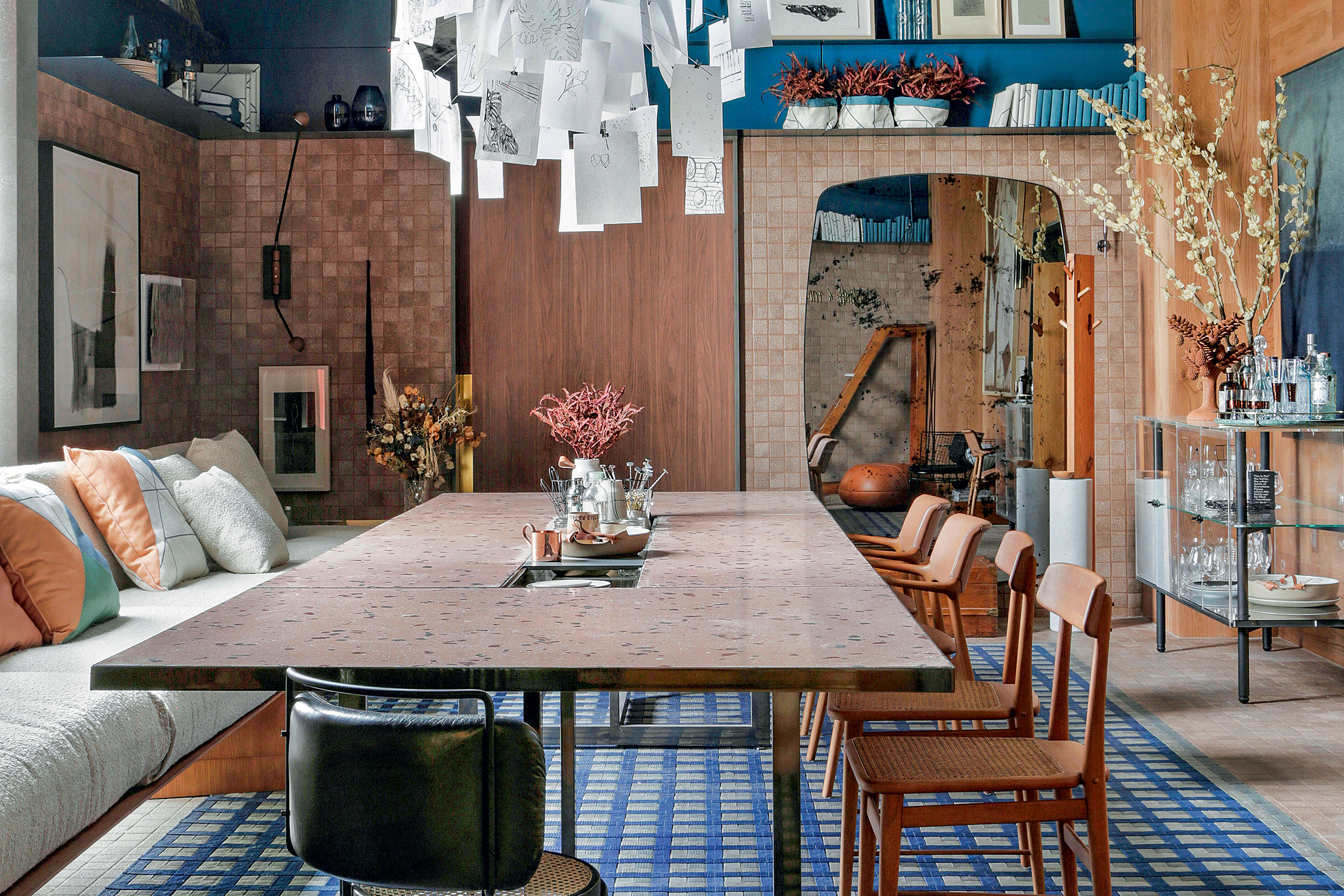Em um mundo tão agitado, momentos de comunhão entre amigos se tornaram sagrados. Foi pensando nesses encontros que a arquiteta Juliana Pippi criou uma enorme mesa com muitos lugares para acomodar convidados em seu ambiente da CASACOR São Paulo deste ano.