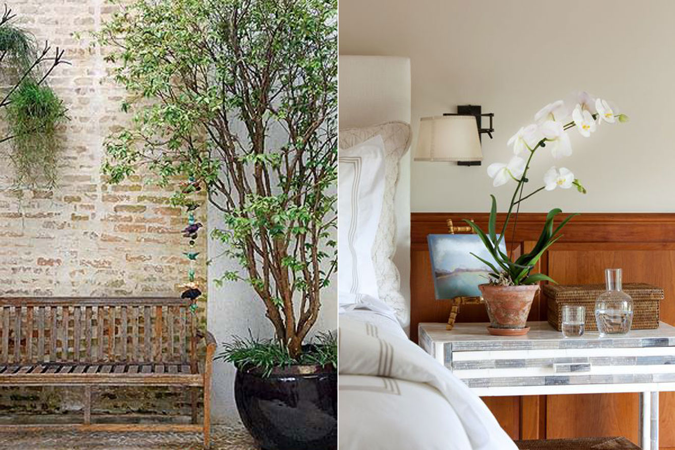 Em ambientes internos como a sala de estar, o quarto ou o corredor uma opção é enfeitar o ambiente com plantas arbóreas como o ciclantus, se a casa dispor de espaço amplo, ou plantas menores como as orquídeas, que cabem em mesas de cabeceira ou de centro.